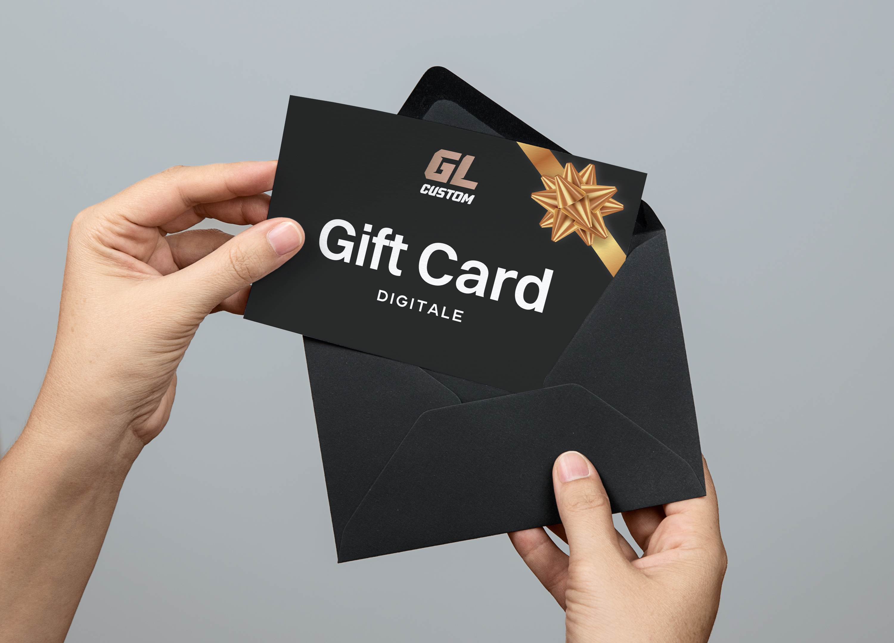 Le nostre gift card sono digitali, immediati e utilizzabili su tutta la gamma di cerchi e accessori GL Custom. Un pensiero pratico, elegante e sempre apprezzato per ogni occasione.